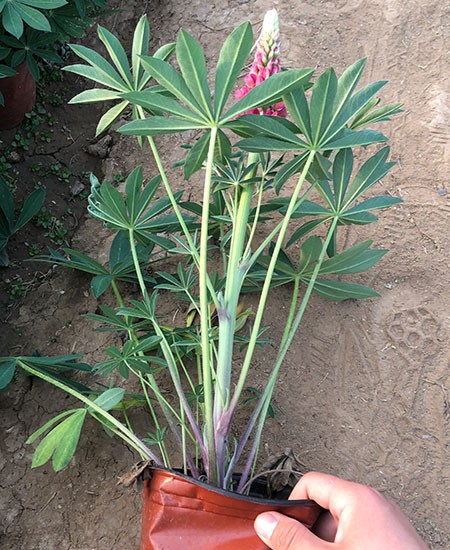 一年生草本,高20-70厘米。莖上升或直立,基部分枝,全株被棕色或銹色硬毛。 掌狀復(fù)葉,小葉5-8枚;葉柄遠(yuǎn)長于小葉;托葉鉆形,長達(dá)1厘米,下半部與葉柄連生;小葉倒卵形、倒披針形至匙形,長15-70毫米,寬5-15毫米,先端鈍或銳尖,具短尖,基部漸狹,兩面均被硬毛。 總狀花序頂生,較短,長5-12厘米,長不超出復(fù)葉,花序軸纖細(xì),下 羽扇豆 羽扇豆 方的花互生,上方的花不規(guī)則輪生,花長10-14毫米;苞片鉆形,長3-4毫米,被毛;花梗甚短,長1-2毫米;萼二唇形,被硬毛,下唇長于上唇,下唇具3深裂片,上唇較淺,果期宿存;花冠藍(lán)色,旗瓣和龍骨瓣具白色斑紋。果序軸增粗,長仍不超出復(fù)葉;莢果長圓狀線形,長2.5-5厘米,寬0.8-1.2厘米,密被棕色硬毛,先端具下指的短喙, 羽扇豆 羽扇豆(4張) 種子間節(jié)莢狀;有種子3-4粒。種子卵形,扁平,黃色,具棕色或紅色斑紋,光滑?;ㄆ?-5月,果期4-7月。