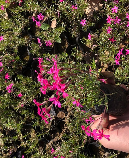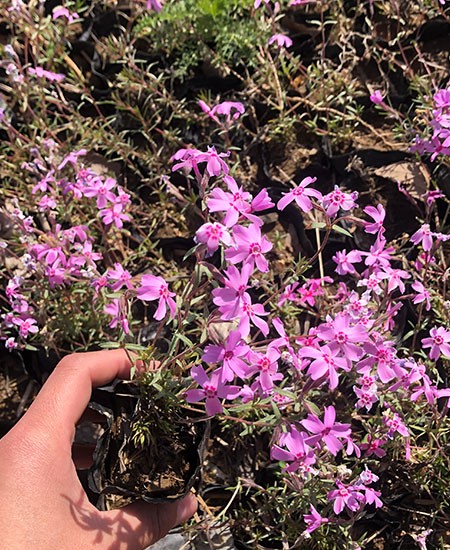 芝櫻,又名“叢生福祿考”,是花荵科,天藍(lán)繡球?qū)俣嗄晟〔荼?。莖叢生,鋪散,多分枝,被柔毛;葉對(duì)生或簇生于節(jié)上,鉆狀線形或線狀披針形;花數(shù)朵生枝頂,成簡(jiǎn)單的聚傘花序,有香味;蒴果長(zhǎng)圓形。 喜溫暖濕潤(rùn)的環(huán)境,對(duì)土壤要求不嚴(yán)。