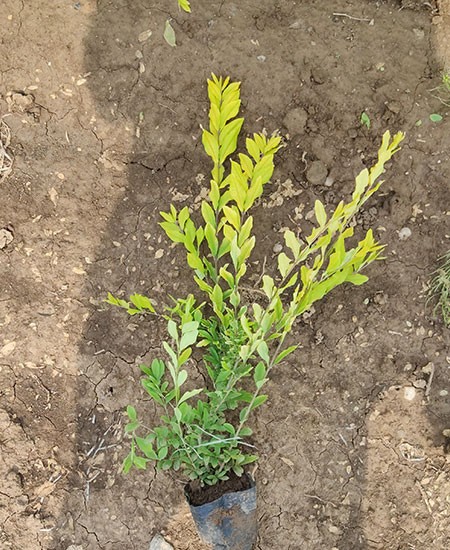金葉女貞(學名:Ligustrum × vicaryi Rehder)是木犀科女貞屬植物,是美國加州的金邊女貞與歐洲女貞樹種雜交而成。落葉灌木,株高2-3米。其嫩枝帶有短毛。葉革薄質(zhì),單葉對生。新葉金黃色,因此得名為金邊女貞,老葉黃綠色至綠色。總狀花序,花為兩性;核果橢圓形,內(nèi)含一粒種子,顏色為黑紫色。花期5-6月,果期10月。喜光,稍耐陰,適應(yīng)性強,抗干旱,病蟲害少,萌芽力強,生長迅速,耐修剪。葉色金黃,觀賞性較佳。盆栽可用于門廊或廳堂處擺放觀賞;園林中常片植或叢植,或做綠籬栽培。