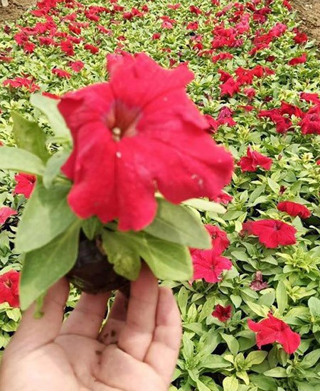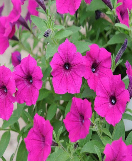 茄科,碧冬茄屬。正式名碧冬茄。多年生草本,常作一二年生栽培,高20—45厘米;莖匍地生長,被有粘質柔毛;葉質柔軟,卵形,全緣,互生,上部葉對生;花單生,呈漏斗狀,重瓣花球形,花白、紫或紅色,并鑲有它色邊,花期4月至降霜;蒴果;種子細小。分布于南美洲,如今各國廣為流行。