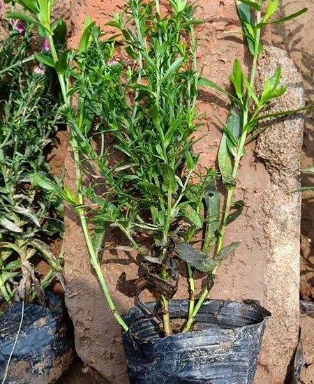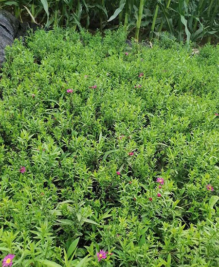 多年生宿根草本,株高50-100厘米,全株被粗毛,上部呈傘房狀分枝。葉狹披針形至線狀披針形,近全緣,基部稍報(bào)莖,無粘性茸毛。 頭狀花序傘房狀著生,花較小,舌狀花1-3輪,淡藍(lán)紫色或白色,總苞片線形,端急尖,微向外伸展,花期8-10月。